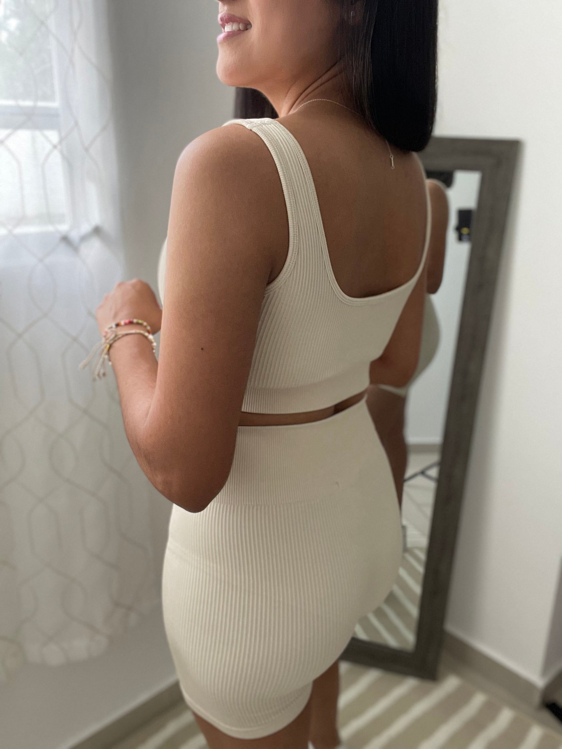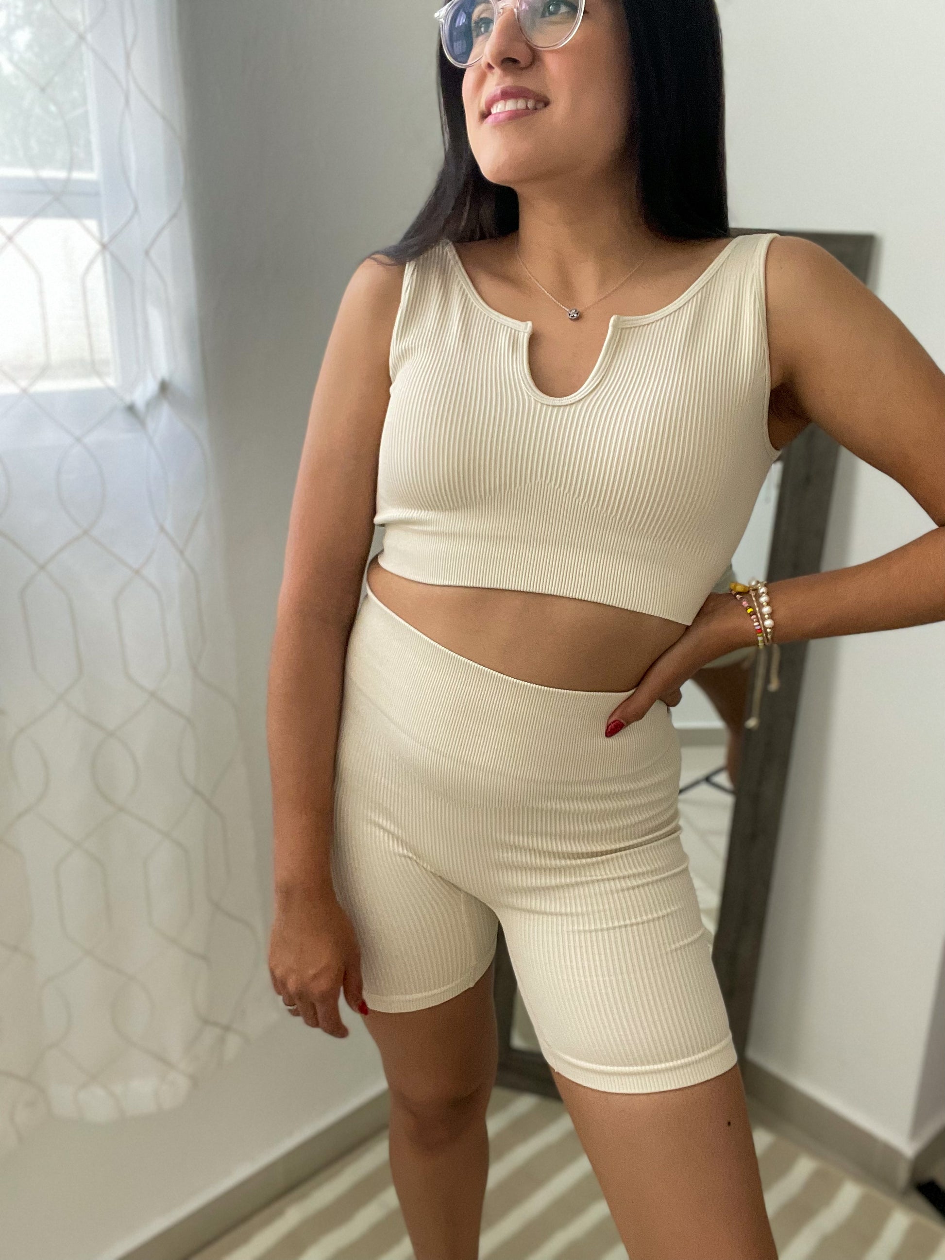 Beige Biker Short Set